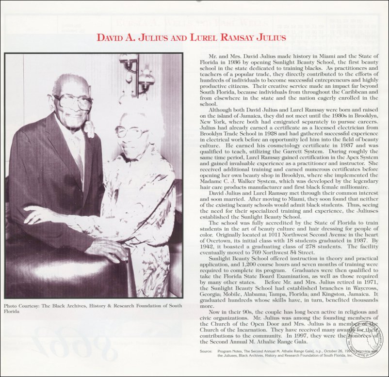 Julius, David A., and Lurel Ramsay Julius. AT&T Miami-Dade County African-American History Calendar, 1998/1999.