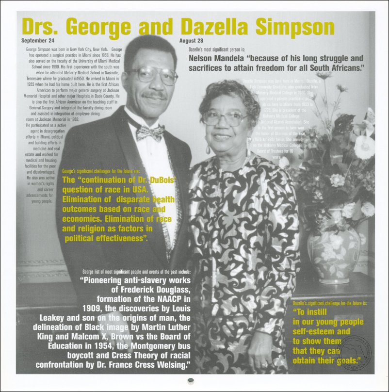 Simpson, Dr. George and Dazella. AT&T Miami-Dade County African-American History Calendar, 2000/2001. | The Black Archives History & Research Foundation of South FL, Inc.