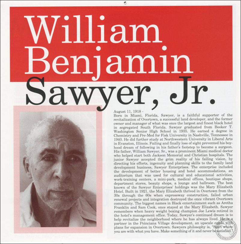 Sawyer, William Benjamin, Jr. AT&T Miami-Dade County African-American History Calendar, 2001/2002.