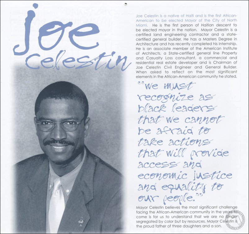 Celestin, Joe. AT&T Miami-Dade County African-American History Calendar, 2002/2003.