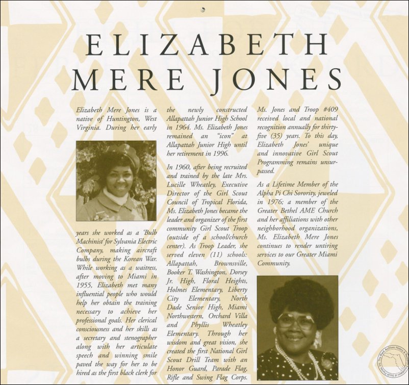 Jones, Elizabeth Mere. AT&T Miami-Dade County African-American History Calendar, 2003/2004.