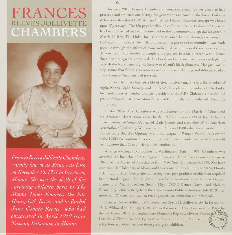 Chambers, Frances. AT&T Miami-Dade County African-American History Calendar, 2010/2011.