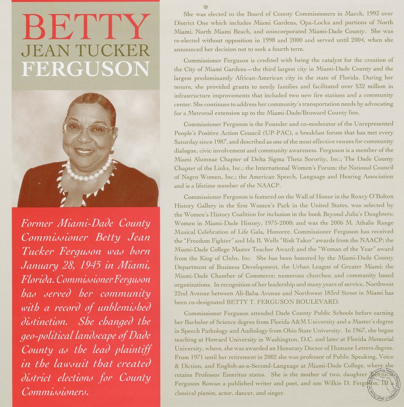 Tucker Ferguson, Betty J. AT&T Miami-Dade County African-American History Calendar, 2010/2011.