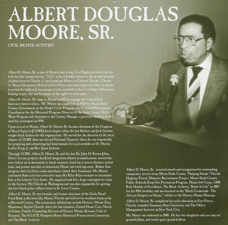 Moore, Albert D, SR. AT&T Miami-Dade County African-American History Calendar, 2011/2012. | The Black Archives History & Research Foundation of South FL, Inc.