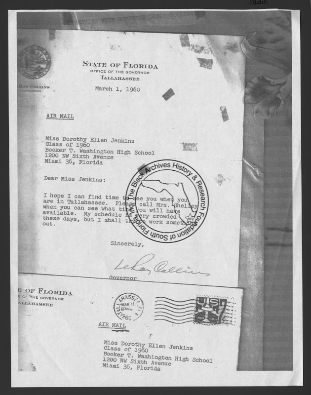 Leroy Collins appointment (correspondence from Leroy Collins to Dorothy Jenkins Fields), 1960. | The Black Archives History & Research Foundation of South FL, Inc.