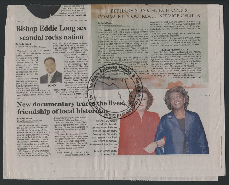 New documentary traces lives, friendship of local historians (newspaper article), 2010. | The Black Archives History & Research Foundation of South FL, Inc.