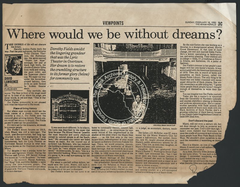 Where would we be without dreams (newspaper article), 1990. | The Black Archives History & Research Foundation of South FL, Inc.