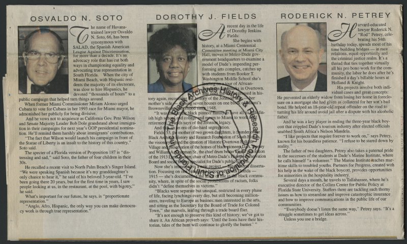 Spirit of Excellence winners (newspaper articles), 1995. | The Black Archives History & Research Foundation of South FL, Inc.