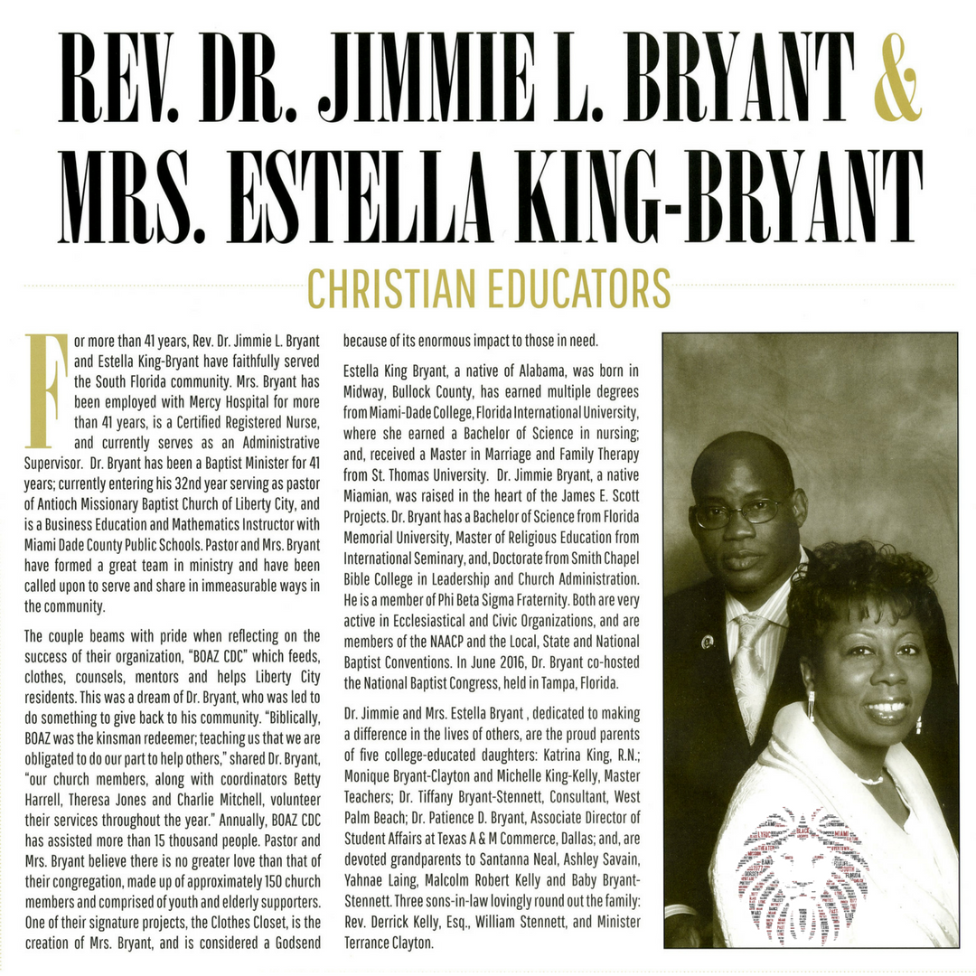 Reverend Dr. Jimmie L. Bryant & Mrs. Estella King-Bryant AT&T Miami Dade County African American Calendar | The Black Archives History & Research Foundation of South FL, Inc.