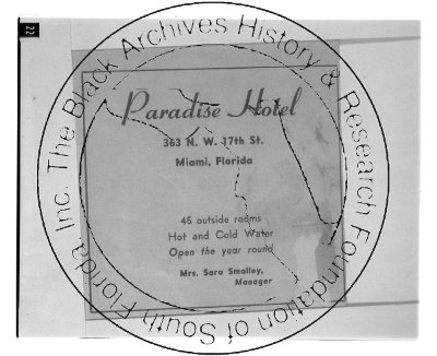 Paradise Hotel, Miami, Florida. Unidentified photographer. Dan Francis Photograph Collection. | The Black Archives History & Research Foundation of South FL, Inc.