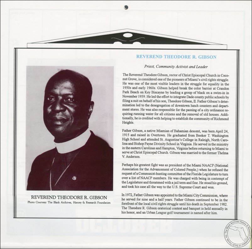 Gibson, Reverend Theodore R. AT&T Miami-Dade County African-American History Calendar, 1995. | The Black Archives History & Research Foundation of South FL, Inc.