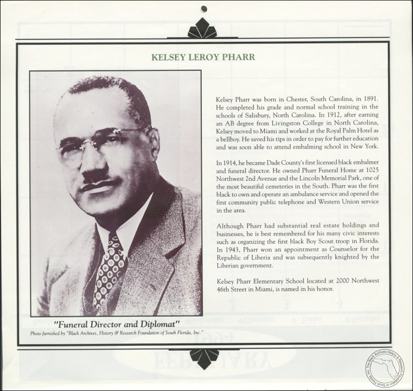 Pharr, Kelsey Leroy. AT&T Miami-Dade County African-American History Calendar. | The Black Archives History & Research Foundation of South FL, Inc.