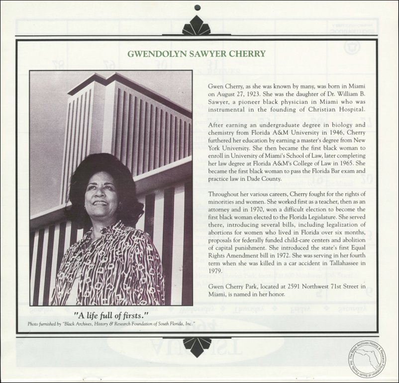 Cherry, Gwendolyn Sawyer. AT&T Miami-Dade County African-American History Calendar 1994. | The Black Archives History & Research Foundation of South FL, Inc.