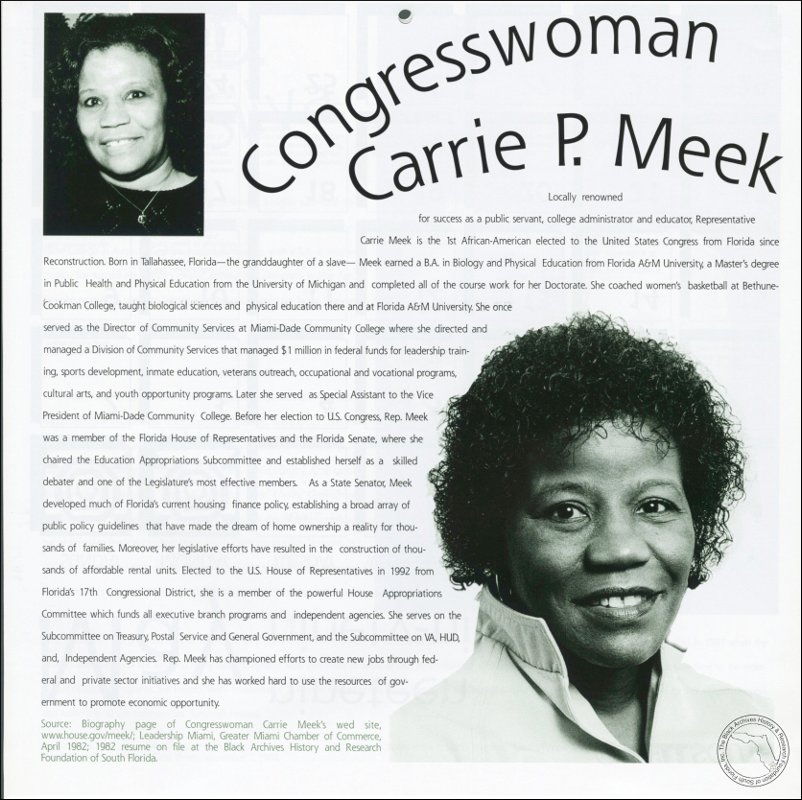 Meek, Carrie P. AT&T Miami-Dade County African-American History Calendar, 1999/2000.