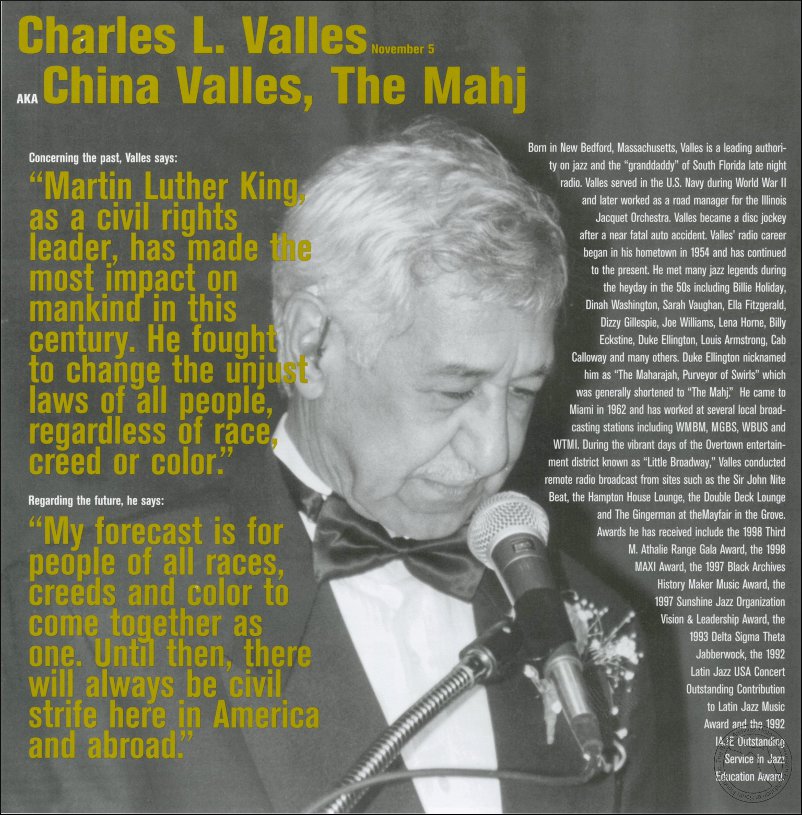 Valles, Charles L., (China Valles). AT&T Miami-Dade County African-American History Calendar, 2000/2001.