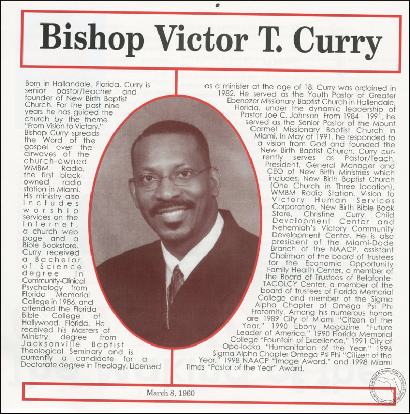 Curry, Bishop Victor T. AT&T Miami-Dade County African-American History Calendar, 2001/2002.