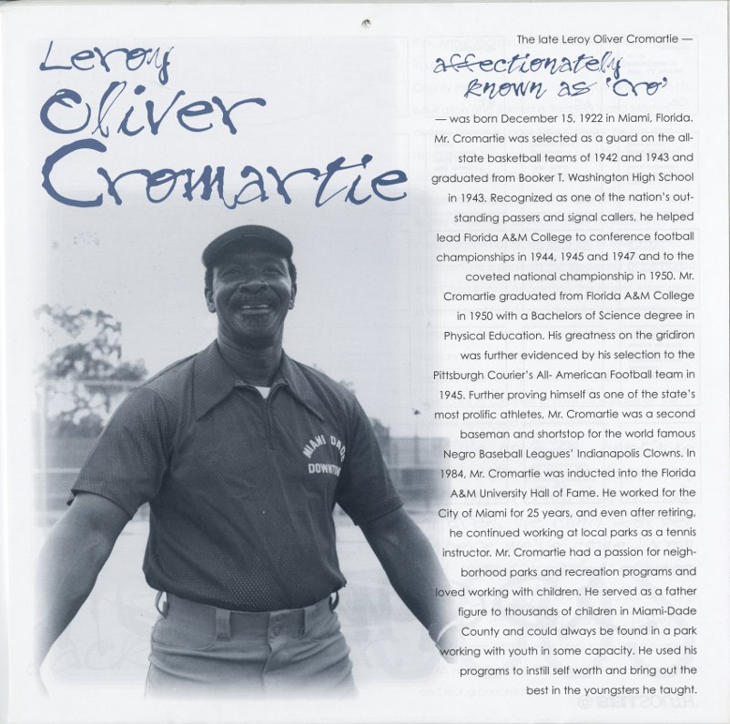 Cromartie, Leroy Oliver. AT&T Miami-Dade County African-American History Calendar, 2002/2003. | The Black Archives History & Research Foundation of South FL, Inc.
