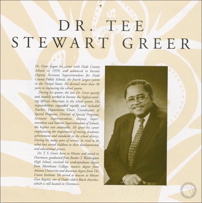 Greer, Dr. Tee Stewart. AT&T Miami-Dade County African-American History Calendar, 2003/2004.