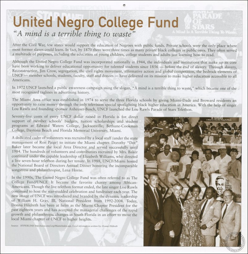 United Negro College Fund. AT&T Miami-Dade County African-American History Calendar 2006/2007. | The Black Archives History & Research Foundation of South FL, Inc.