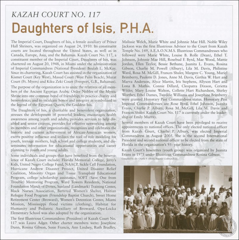 Daughters of Isis, P.H.A. AT&T Miami-Dade County African-American History Calendar 2006/2007.