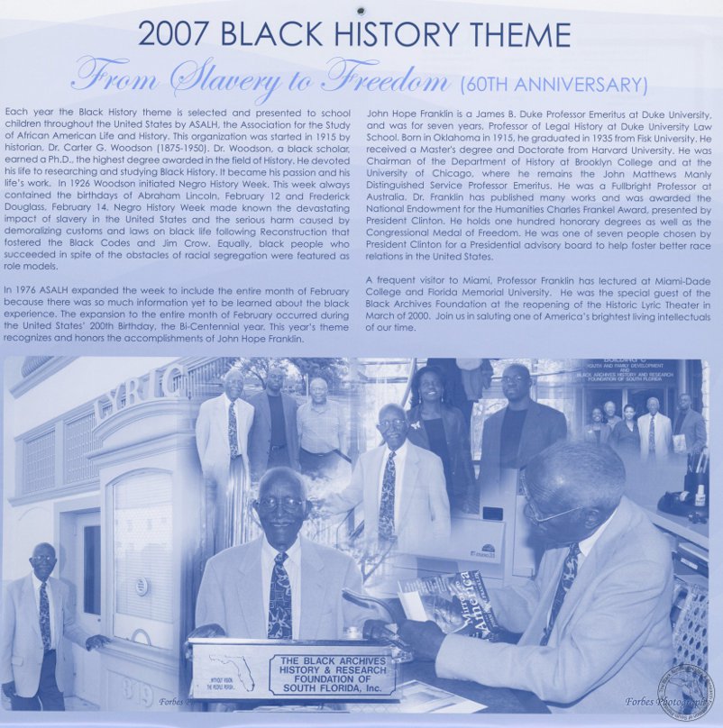Franklin, Jhon Hope. AT&T Miami-Dade County African-American History Calendar 2007/2008.