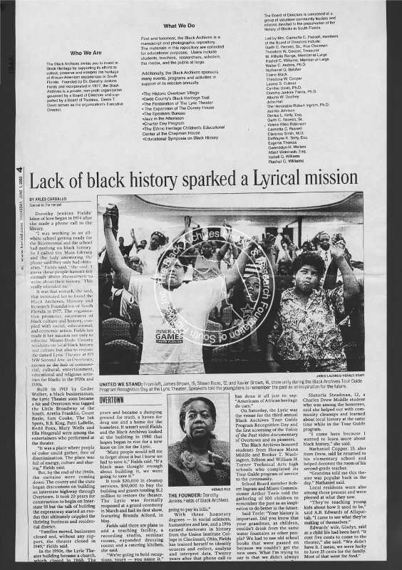 Lack of black history sparked a Lyrical mission (newspaper article), 2000. | The Black Archives History & Research Foundation of South FL, Inc.