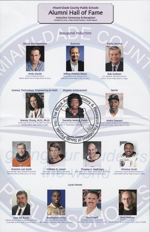 Miami-Dade County Public Schools Alumni Hall of Fame (flyer), 2012.