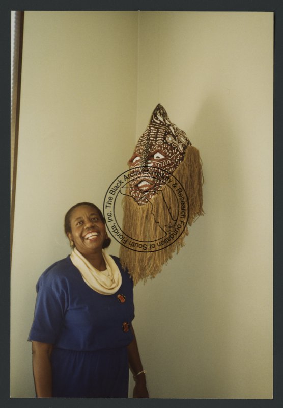 Fields, Dr. Dorothy Jenkins with African mask (photograph), circa 1990s. | The Black Archives History & Research Foundation of South FL, Inc.