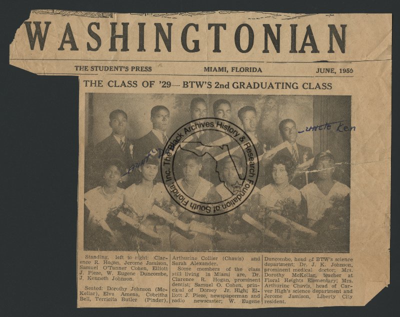 Class of 1929: Booker T. Washington's 2nd graduating class (newspaper article), 1929. | The Black Archives History & Research Foundation of South FL, Inc.