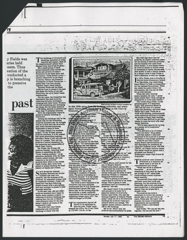 Her mission: Preserving black history (newspaper article), 1983. | The Black Archives History & Research Foundation of South FL, Inc.