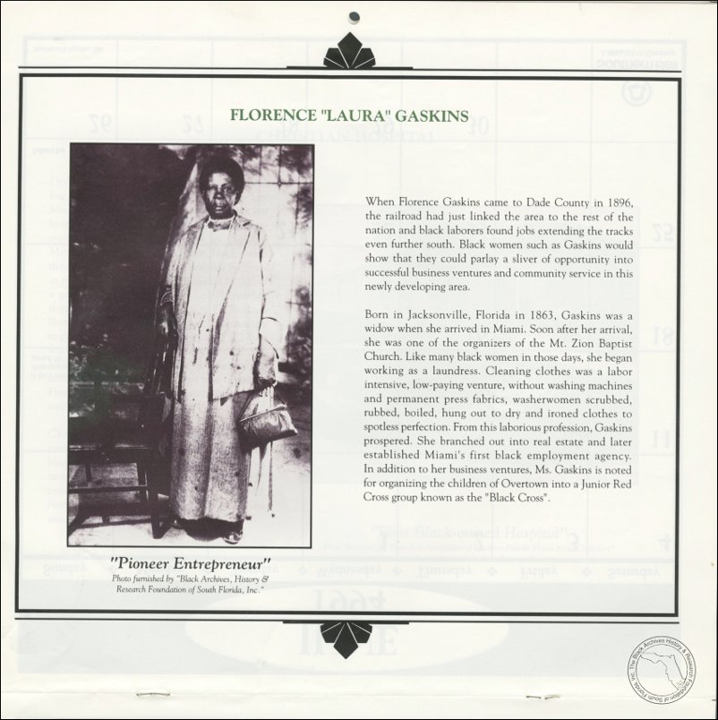 Gaskins, Florence Laura. AT&T Miami-Dade County African-American History Calendar 1994. | The Black Archives History & Research Foundation of South FL, Inc.