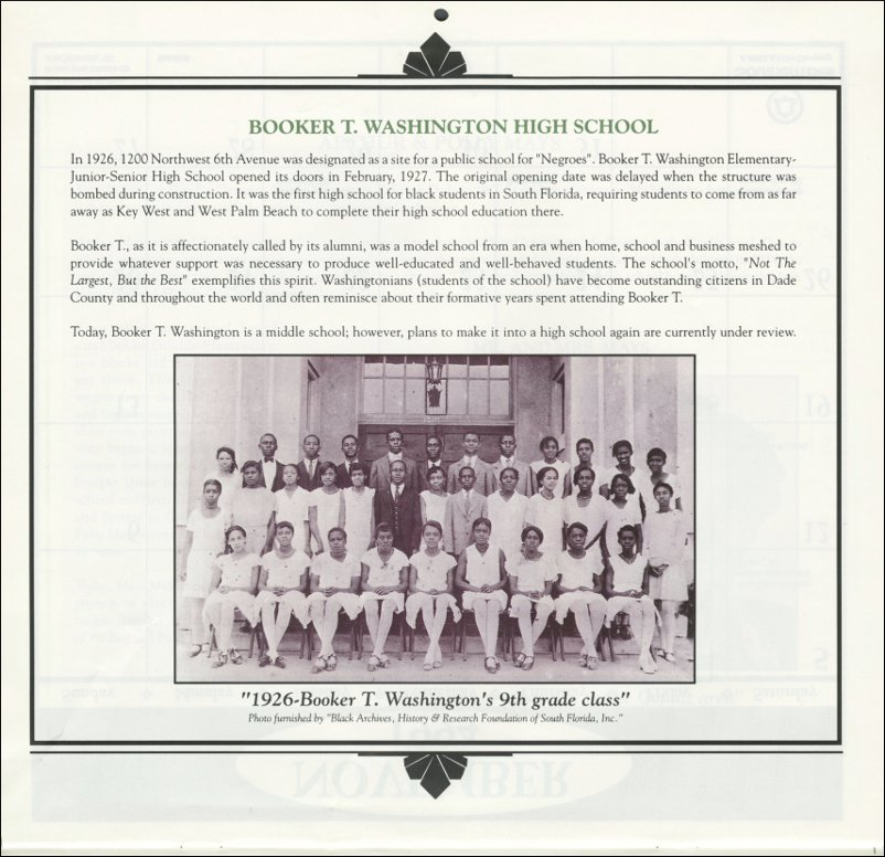 Booker T. Washington High School. AT&T Miami-Dade County African-American History Calendar 1994. | The Black Archives History & Research Foundation of South FL, Inc.